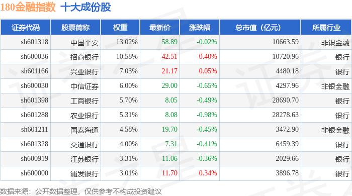180金融(000018)指数十大成份股详情如下: