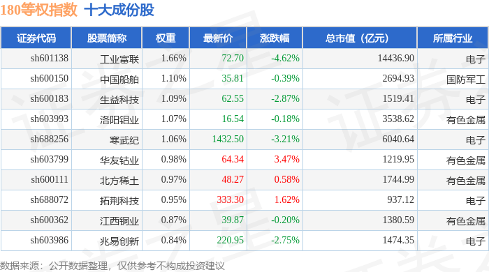 180等权(000051)指数十大成份股详情如下: