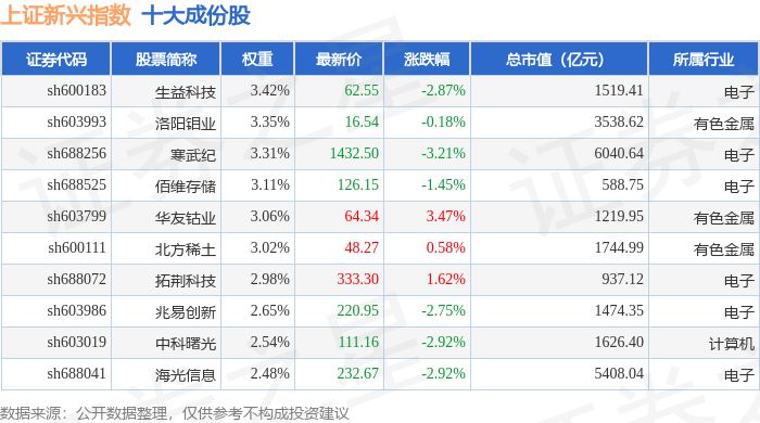 证券之星消息,11月7日,上证新兴(000067)指数报收于9101.29点,跌0.36%,成交1429.67亿元,换手率1.58%。当日该指数成份股中,上涨的有17家,通威股份以6.77%的涨幅领涨,下跌的有33家,传音控股以4.39%的跌幅领跌。