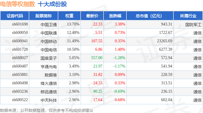 资金流向方面,电信等权(000078)指数成份股当日主力资金净流入合计4521.58万元,游资资金净流入合计562.35万元,散户资金净流出合计5083.93万元。成份股资金流向详情见下表: