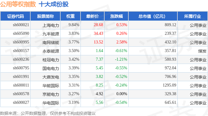 证券之星消息,11月7日,公用等权(000079)指数报收于2737.23点,涨0.02%,成交144.58亿元,换手率0.79%。当日该指数成份股中,上涨的有12家,南网储能以2.58%的涨幅领涨,下跌的有15家,涪陵电力以2.54%的跌幅领跌。