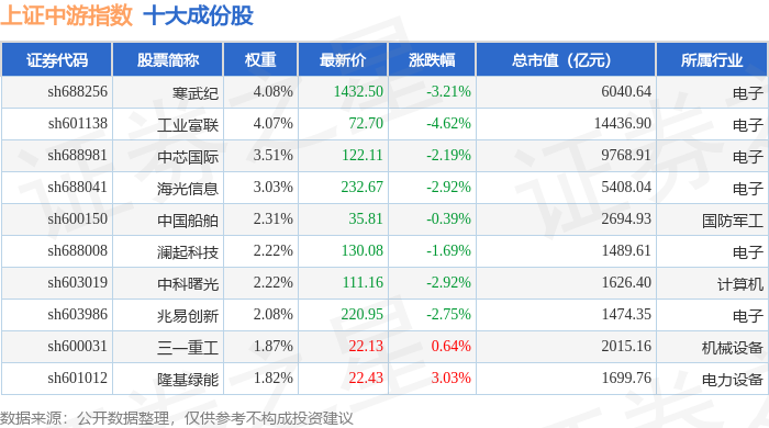 证券之星消息,11月7日,上证中游(000095)指数报收于3973.64点,跌0.54%,成交2691.31亿元,换手率1.79%。当日该指数成份股中,上涨的有84家,弘元绿能以10.01%的涨幅领涨,下跌的有109家,拓普集团以5.47%的跌幅领跌。