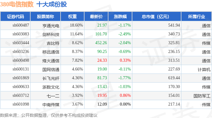 380电信(000112)指数十大成份股详情如下: