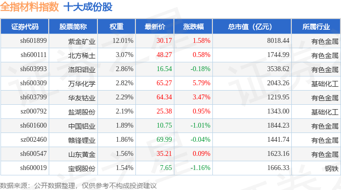 资金流向方面,全指材料(000987)指数成份股当日主力资金净流入合计9.32亿元,游资资金净流入合计3231.15万元,散户资金净流出合计9.64亿元。成份股资金流向详情见下表: