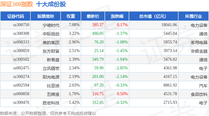 证券之星消息,11月7日,深证300(399007)指数报收于5671.44点,跌0.44%,成交3925.85亿元,换手率1.54%。当日该指数成份股中,上涨的有121家,天华新能以15.32%的涨幅领涨,下跌的有170家,科达利以6.15%的跌幅领跌。