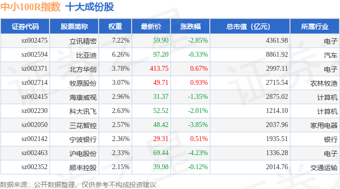 中小100R(399333)指数十大成份股详情如下: