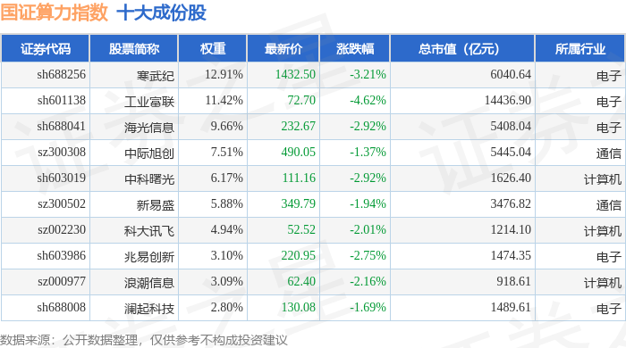 资金流向方面,国证算力(399363)指数成份股当日主力资金净流出合计60.33亿元,游资资金净流入合计21.98亿元,散户资金净流入合计38.35亿元。成份股资金流向详情见下表: