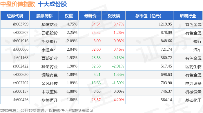 中盘价值(399375)指数十大成份股详情如下: