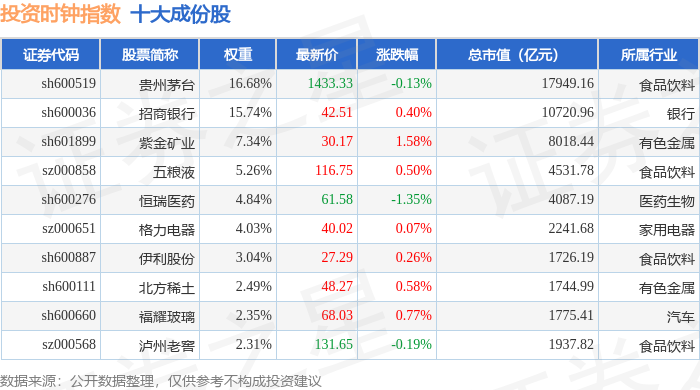 投资时钟(399391)指数十大成份股详情如下:
