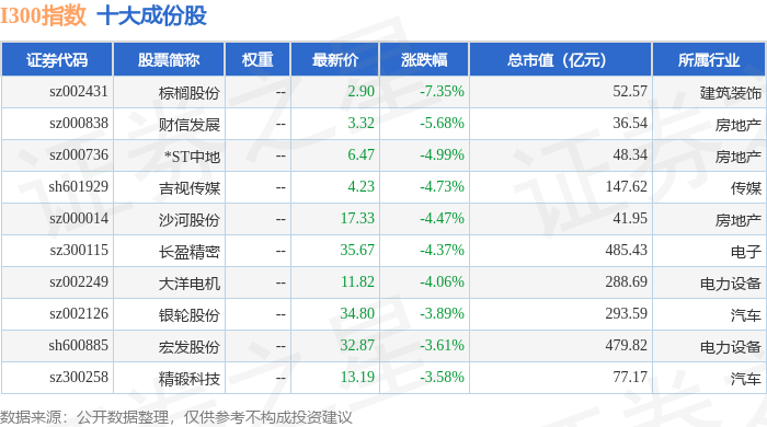 I300(399416)指数十大成份股详情如下: