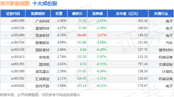 深次新股(399678)指数十大成份股详情如下: