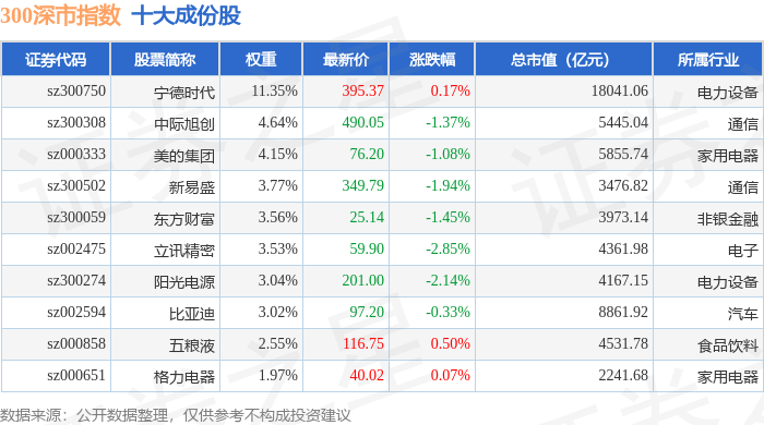 证券之星消息,11月7日,300深市(399972)指数报收于5695.11点,跌0.51%,成交2192.06亿元,换手率1.25%。当日该指数成份股中,上涨的有39家,天孚通信以12.67%的涨幅领涨,下跌的有65家,沪电股份以4.23%的跌幅领跌。