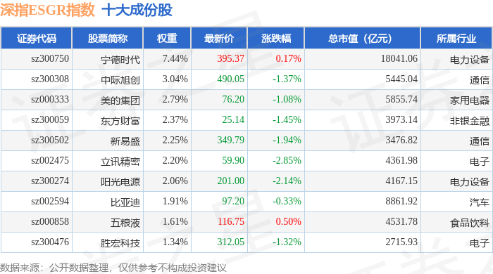 证券之星消息,11月7日,深指ESGR(470026)指数报收于19200.62点,跌0.37%,成交4485.61亿元,换手率1.75%。当日该指数成份股中,上涨的有171家,天华新能以15.32%的涨幅领涨,下跌的有215家,神州信息以8.22%的跌幅领跌。
