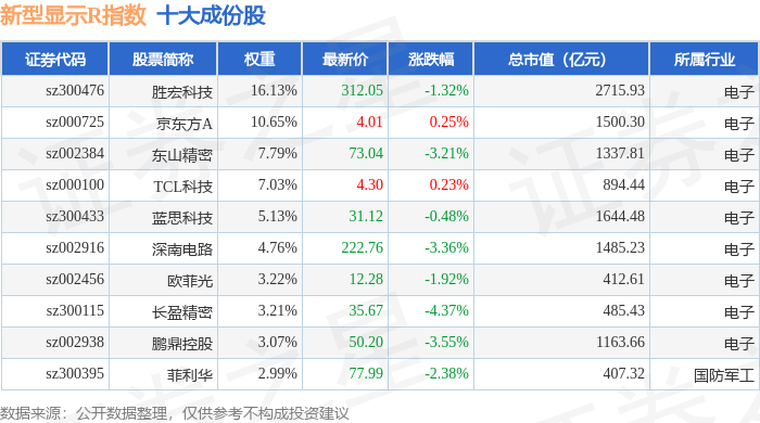 新型显示R(470048)指数十大成份股详情如下: