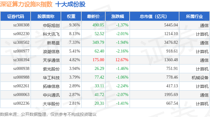 资金流向方面,深证算力设施R(470051)指数成份股当日主力资金净流出合计28.29亿元,游资资金净流入合计7.76亿元,散户资金净流入合计20.53亿元。成份股资金流向详情见下表: