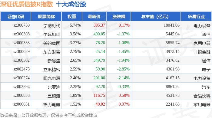 深证优质信披R(470065)指数十大成份股详情如下: