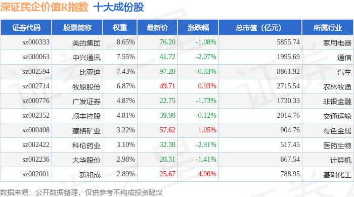 资金流向方面,深证民企价值R(470072)指数成份股当日主力资金净流出合计11.18亿元,游资资金净流入合计2.81亿元,散户资金净流入合计8.37亿元。成份股资金流向详情见下表: