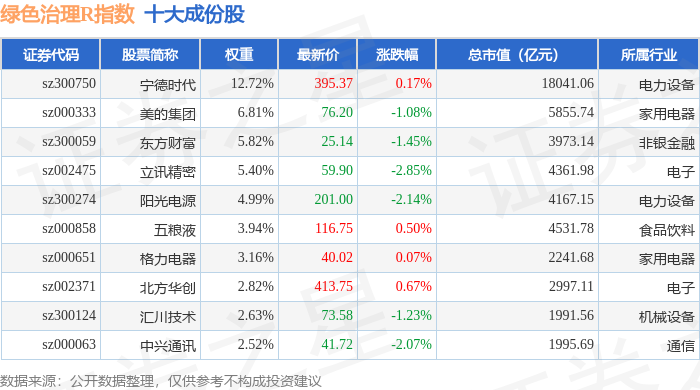 资金流向方面,绿色治理R(480058)指数成份股当日主力资金净流出合计41.75亿元,游资资金净流入合计7.04亿元,散户资金净流入合计34.71亿元。成份股资金流向详情见下表: