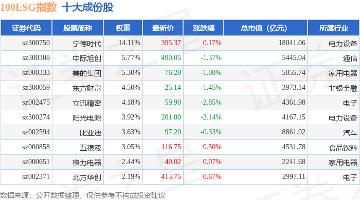 资金流向方面,100ESG(970027)指数成份股当日主力资金净流出合计38.67亿元,游资资金净流入合计6.83亿元,散户资金净流入合计31.83亿元。成份股资金流向详情见下表: