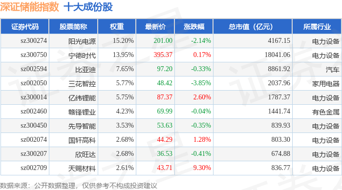 资金流向方面,深证储能(970036)指数成份股当日主力资金净流入合计24.32亿元,游资资金净流出合计5.82亿元,散户资金净流出合计18.49亿元。成份股资金流向详情见下表: