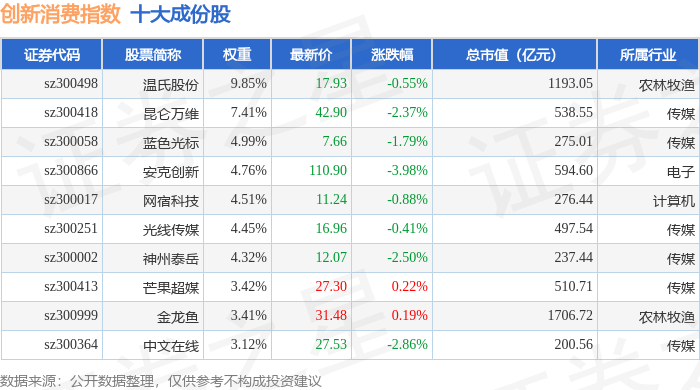 资金流向方面,创新消费(970041)指数成份股当日主力资金净流出合计18.73亿元,游资资金净流入合计6.36亿元,散户资金净流入合计12.36亿元。成份股资金流向详情见下表: