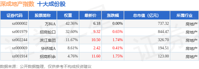 证券之星消息,11月7日,深成地产(971001)指数报收于476.57点,涨0.53%,成交14.11亿元,换手率0.74%。当日该指数成份股中,上涨的有4家,招商积余以1.75%的涨幅领涨。