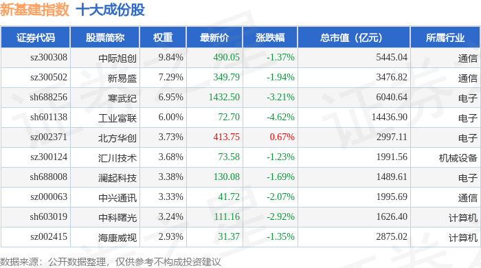证券之星消息,11月7日,新基建(980029)指数报收于7291.78点,跌1.58%,成交1319.56亿元,换手率1.16%。当日该指数成份股中,上涨的有10家,特变电工以4.17%的涨幅领涨,下跌的有40家,工业富联以4.62%的跌幅领跌。
