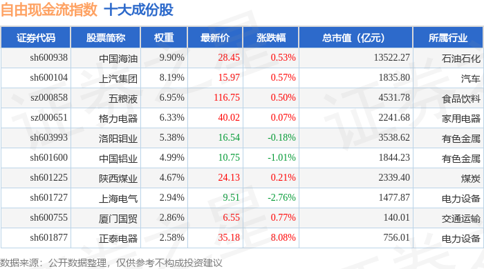 自由现金流(980092)指数十大成份股详情如下: