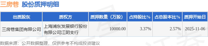 证券之星消息,三房巷(600370)11月7日公开信息显示,股东三房巷集团有限公司向上海浦东发展银行股份有限公司江阴支行合计质押1.0亿股,占总股本2.57%。质押详情见下表: