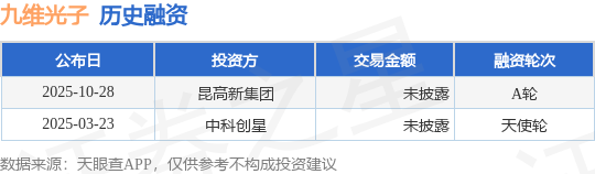 证券之星消息,根据天眼查APP于10月28日公布的信息整理,九维光子科技(昆山)有限公司A轮融资,融资额未披露,参与投资的机构包括昆高新集团。