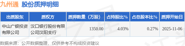 证券之星消息,九州通(600998)11月8日公开信息显示,股东中山广银投资有限公司向汉口银行股份有限公司汉阳支行合计质押1350.0万股,占总股本0.27%。质押详情见下表: