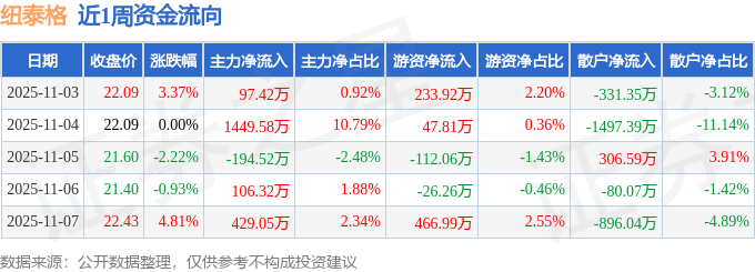 资金流向数据方面,本周纽泰格主力资金合计净流入1887.85万元,游资资金合计净流入610.41万元,散户资金合计净流出2498.25万元。本周资金流向一览见下表: