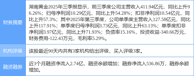 2025年8月26日,国金证券研究员王钦扬,金云涛发布了对湖南黄金的研报《外购业务比重增加拖累盈利水平,看好锑价回涨》,该研报对湖南黄金给出“买入”评级。研报中预计公司25-27年营收分别为538/563/613亿元,归母净利润分别为14/16/22亿元,EPS分别为1.34/1.40/2.38元,对应PE分别为23/20/15倍。维持“买入”评级。证券之星数据中心根据近三年发布的研报数据计算,该研报作者对此股的盈利预测准确度为78.36%。