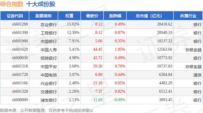 综合指数(000008)十大成份股详情如下: