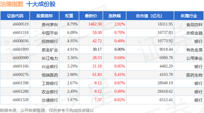 证券之星消息,11月10日,治理指数(000019)报收于1241.97点,涨0.67%,成交1714.78亿元,换手率0.45%。当日该指数成份股中,上涨的有217家,中国中免以10.0%的涨幅领涨,下跌的有76家,淳中科技以10.0%的跌幅领跌。