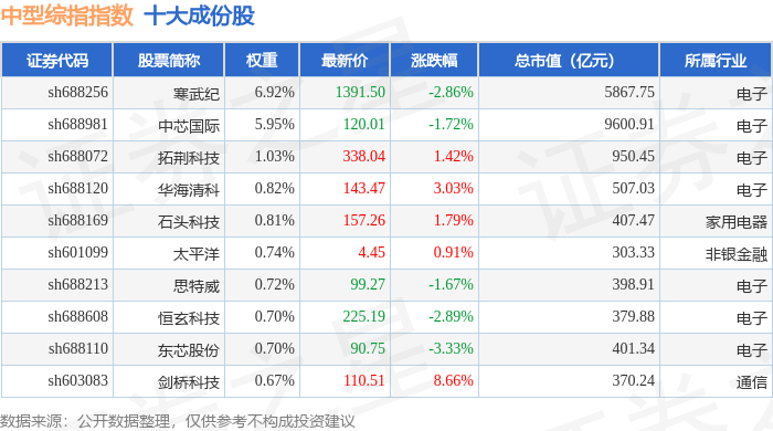 证券之星消息,11月10日,中型综指(000020)指数报收于1669.3点,涨0.05%,成交2200.18亿元,换手率2.8%。当日该指数成份股中,上涨的有547家,华盛锂电以20.0%的涨幅领涨,下跌的有356家,天宜新材以13.63%的跌幅领跌。