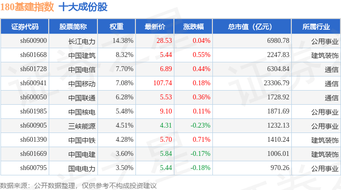 资金流向方面,180基建(000025)指数成份股当日主力资金净流出合计3.21亿元,游资资金净流出合计1.01亿元,散户资金净流入合计4.22亿元。成份股资金流向详情见下表: