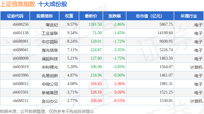 证券之星消息,11月10日,上证信息(000039)指数报收于5713.09点,跌1.06%,成交1163.42亿元,换手率2.12%。当日该指数成份股中,上涨的有24家,三六零以4.44%的涨幅领涨,下跌的有26家,景旺电子以4.92%的跌幅领跌。