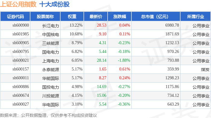 资金流向方面,上证公用(000041)指数成份股当日主力资金净流出合计9762.15万元,游资资金净流出合计1.66亿元,散户资金净流入合计2.64亿元。成份股资金流向详情见下表: