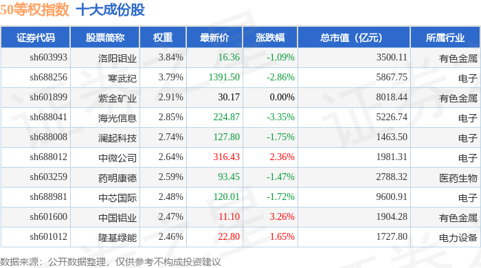 证券之星消息,11月10日,50等权(000050)指数报收于2471.57点,涨0.55%,成交1399.07亿元,换手率0.29%。当日该指数成份股中,上涨的有37家,中国中免以10.0%的涨幅领涨,下跌的有12家,三一重工以4.52%的跌幅领跌。