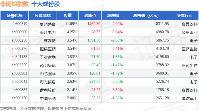 非周期(000064)指数十大成份股详情如下: