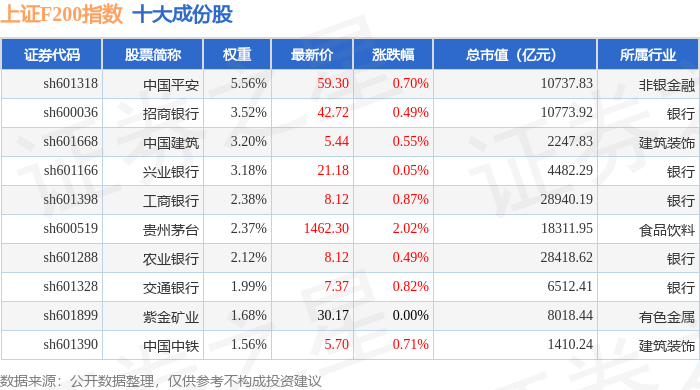 证券之星消息,11月10日,上证F200(000098)指数报收于5658.92点,涨0.74%,成交2723.43亿元,换手率0.61%。当日该指数成份股中,上涨的有141家,中国中免以10.0%的涨幅领涨,下跌的有49家,三一重工以4.52%的跌幅领跌。