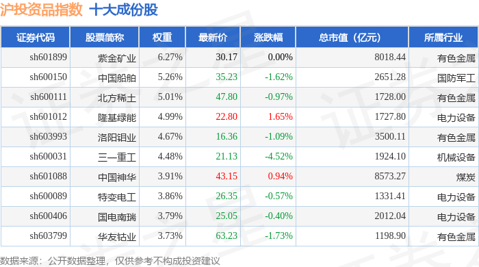 证券之星消息,11月10日,沪投资品(000102)指数报收于7683.02点,跌0.08%,成交1174.55亿元,换手率2.26%。当日该指数成份股中,上涨的有23家,东方电气以7.68%的涨幅领涨,下跌的有25家,三一重工以4.52%的跌幅领跌。