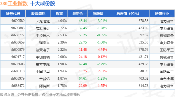 资金流向方面,380工业(000106)指数成份股当日主力资金净流出合计8.93亿元,游资资金净流入合计1.22亿元,散户资金净流入合计7.71亿元。成份股资金流向详情见下表: