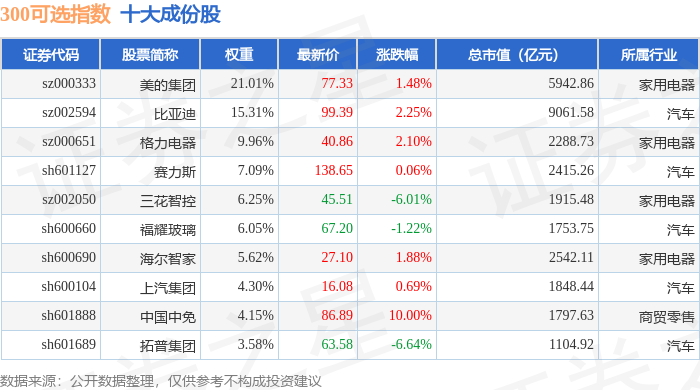 300可选(000911)指数十大成份股详情如下: