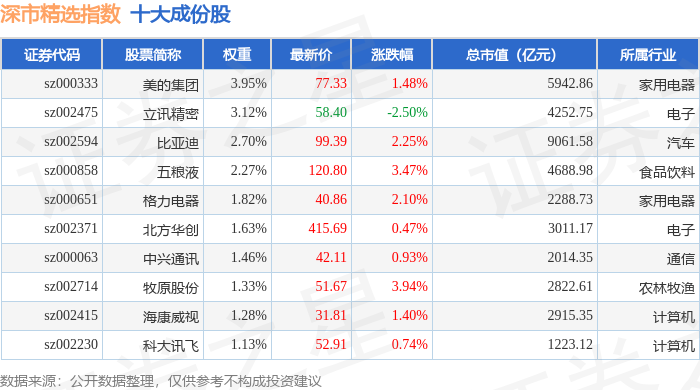 资金流向方面,深市精选(399013)指数成份股当日主力资金净流出合计65.47亿元,游资资金净流出合计18.32亿元,散户资金净流入合计83.78亿元。成份股资金流向详情见下表: