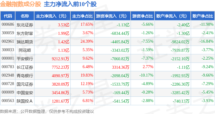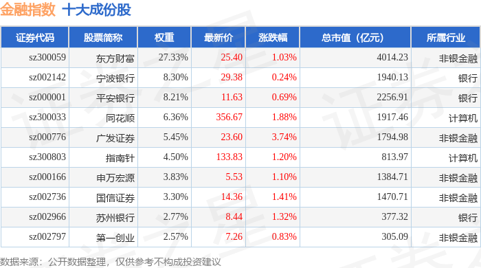 金融指数(399240)十大成份股详情如下: