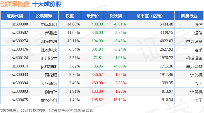 证券之星消息,11月10日,创质量(399269)指数报收于7822.09点,跌0.67%,成交1548.97亿元,换手率3.54%。当日该指数成份股中,上涨的有51家,香农芯创以15.19%的涨幅领涨,下跌的有48家,同飞股份以8.54%的跌幅领跌。
