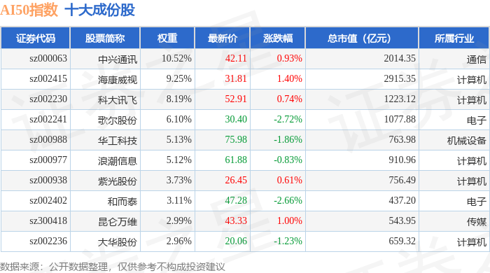 资金流向方面,AI50(399284)指数成份股当日主力资金净流出合计16.66亿元,游资资金净流入合计549.12万元,散户资金净流入合计16.6亿元。成份股资金流向详情见下表: