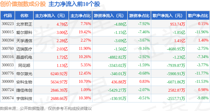 资金流向方面,创价值(399295)指数成份股当日主力资金净流出合计51.3亿元,游资资金净流入合计4.2亿元,散户资金净流入合计47.11亿元。成份股资金流向详情见下表: